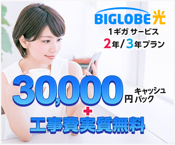 ビッグローブ光キャンペーン!新規お申し込みで25,000円キャッシュバック中!